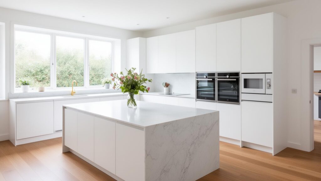 Every design change automatically recalculates cabinet widths, filler panels, worktop lengths, and all accessories. Supplier SKUs, lead times, and availability are always current. No more manual reconciliation or ordering mistakes.